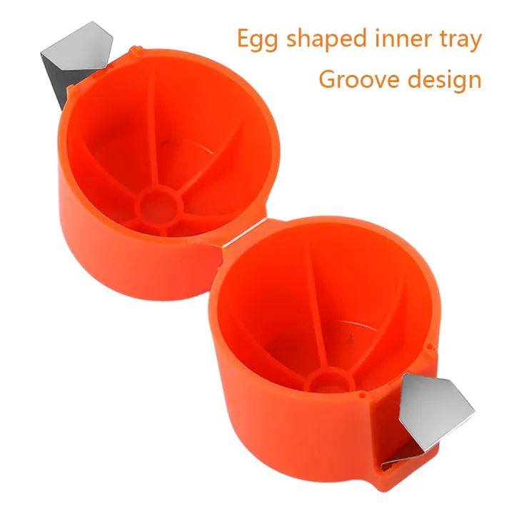 Simple Egg-cracking: The eggs opener can quickly open the eggs shell, and it is ergonomic, featured by the cubes appearance and oval-groove, and the eggs opener can stably contain the eggs, so the eggs is not easy to fall.